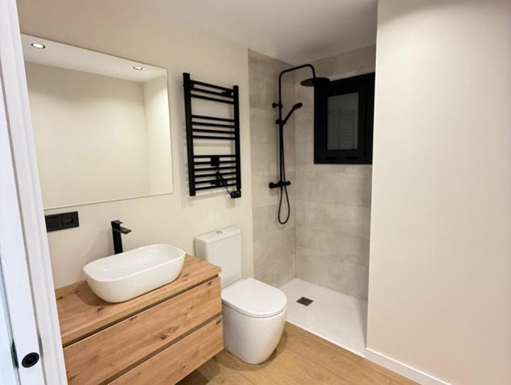 La oficina cuenta con un despacho y un baño, ideal para quienes necesitan un espacio compacto pero bien equipado. También una zona amplia con una cocina office amueblada facilita la preparación de tus comidas, mientras que el balcón exterior te ofrece un rincón para disfrutar del sol y la vista. Gracias a su orientación sur, la luz natural inunda cada rincón, creando un ambiente luminoso y acogedor.