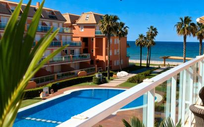 Apartamento 2 Dorm. 1ª Línea Playa con Acceso Directo, Vistas al Mar y Terraza Gigante en Dénia-Las Marinas. Descubra este fantástico apartamento en una Segunda planta con ascensor. esquinero de 2 dormitorios, ubicado en primera línea de playa con acceso directo al mar en el codiciado Km 7 de Las Marinas, Dénia. Disfrute de una vida mediterránea con una impresionante terraza de 50 m², vistas abiertas al mar y una urbanización con piscina y jardines, a un paso de servicios y del centro. 1ª línea de playa, Km 7 Las Marinas, acceso directo, cerca de servicios (supermercados, restaurantes, bus). Orientación Sureste, Vistas abiertas al mar y a la zona ajardinada y parque infantil. Con 91 m² construidos, 2 dormitorios dobles con armarios empotrados, 2 baños completos (principal en suite), cocina abierta, salón-comedor luminoso, una galería de 5 mª , A/C por Split en todas las estancias, ventanas doble acristalamiento. Una Plaza de aparcamiento subterráneo numerada y trastero. Acceso Directo a la Playa: Un lujo inigualable. Perfecta para disfrutar del clima y las vistas. Aire acondicionado, garaje, trastero, piscina. Buenas calidades y acabados, listo para entrar a vivir o rentabilizarlo con los alquileres vacacional. "¡No pierda esta oportunidad! Contáctenos para más información o para organizar una visita."
