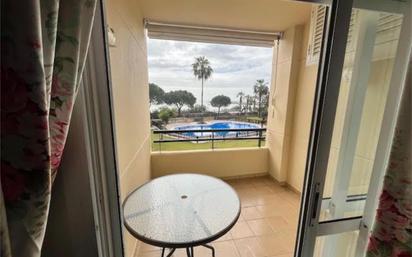 Apartamento de 2 dormitorios, 1 baño, garaje, trastero, vistas al mar, piscina, terraza y VFT de piso turístico. La cocina está incluida y el frigorífico también.