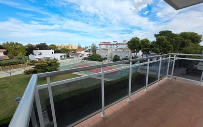 En esta ocasión te presentamos este piso en la Ràpita (Tarragona), ubicado en una zona privilegiada a 100 metros de la playa. Este inmueble al ser esquinero, todas sus estancias son exteriores. Cuenta con tres dormitorios, de los cuales dos son dobles y uno individual, todos equipados con armarios empotrados y balcón con vistas despejadas. Dos baños, uno con plato de ducha y otro con bañera. La cocina independiente ofrece un espacio funcional y cómodo, tiene una galería exterior que ayuda a su organización y orden. Luminoso y gran salón comedor, que tiene acceso directo a una terraza esquinera con vistas al mar. Otro punto a favor es que disfruta de aire acondicionado por conductos que climatiza todas las estancias. El precio incluye una plaza de aparcamiento y trastero. El complejo residencial ofrece una variedad de servicios como piscina, pistas de tenis y amplio jardín. A pasos de la playa y supermercados muy cerca. Vivienda ideal como residencia habitual o también como para segunda residencia junto al mar.