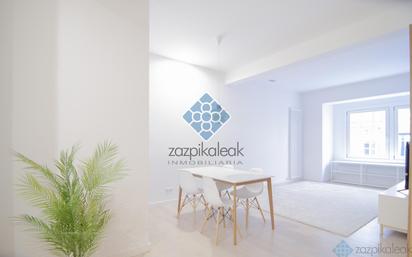 Piso en casco viejo, con 105 m² construidos, 2 dormitorios, 2 baños, reformado, exterior, planta 1, 1 terraza(s), 5 m² de terraza, trastero, orientación suroeste, 1930, 6 plantas del edificio, calefacción individual, energía calefacción gas natural, agua caliente individual, energía agua gas natural, gastos de comunidad/mes de 40 €. Inmobiliaria Zazpikaleak te ofrece en ¡¡¡EXCLUSIVA!!! Piso en el Casco Viejo emplazado en edificio de HORMIGON Hermoso piso diseñado y reformado por prestigiosa Arquitecta, con materiales de primerísima calidad. Este maravilloso piso de 105 metros cuadrados unifica en su gran diseño lo clásico con lo moderno, sus techos altos, sus espacios bien aprovechados , su Luz, serán algunas de las maravillas con la que te encontraras ... Su ubicación es excelente, esta emplazado en una de las mejores calle del Casco Histórico, cerca de supermercados, fruterías, restaurantes de buena gastronomía, a escasos metros de la parada de autobús, tranvía y metro. El piso como he nombrado antes tiene unos acabados de calidad y una distribución racional. La distribución es la siguiente: Se accede a través de un ancho pasillo bien aprovechado que dispone de diferentes sistemas de almacenamiento y con la luz que irradia gracias al gran ventanal con vistas a la calle. A continuación, nos encontramos la zona destinada a salón comedor. Desde esta estancia se accede a los dormitorios. El dormitorio principal es tipo suite con área de trabajo, y sistemas de almacenamiento a los lados. Incorpora un baño con ducha y acabados de primera. En el segundo dormitorio se ha aprovechado muy bien el espacio, instalando camas tipo litera que se pueden recoger gracias a un sistema de amortiguadores hidráulicos. El piso tiene un segundo baño con ducha, y la zona de cocina amplia y luminosa con acceso a una terraza grande. Inmobiliaria Zazpikaleak estamos inscritos y regulados por el Colegio de Agentes de la Propiedad Inmobiliaria de Bizkaia bajo el número (API 593) cuya visión es generar confianza y satisfacción en nuestros clientes a través de un servicio personalizado, transparente y de alta calidad. Buscamos establecer relaciones duraderas, convirtiéndonos en su aliado de confianza en el proceso de compra, venta o alquiler de propiedades. Consulta las condiciones. LLAMANOS Calle Jardines 8 - Bilbao Tel. 946790327 Mov. 695722066 www.zazpikaleak.com