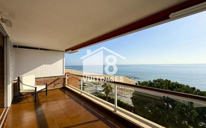 ¡BIENVENIDOS AL SUEÑO DE VIVIR EN FRENTE DEL MAR! Hoy nos place presentarles este fantástico piso en la primera linea de mar más deseada de toda la costa de Barcelona, el paseo marítimo de Sant Vicenç de Montalt. Con una apertura estupenda y un metraje cómodo y generoso, este piso reúne lo esencial para que lo puedan convertir en su próximo hogar. Se tarta de un cuarto de altura por lo que des del primer momento que ponemos un pie en el, el mar toma protagonismo y nos acompaña en todo momento. Consta de una total de 117 m2 construidos, los cuales actualmente se distribuyen en un salón-comedor, una cocina office independiente con galería, una habitación individual, un baño completo y una gran suite con baño integrado y sala de estar. Digo actualmente porque en origen disponía de cuatro habitaciones (dos dobles y dos individuales), por lo que recuperarlas si así fuera necesario, no sería un problema. A nivel interior el piso está muy bien, pero sin duda alguna el plato fuerte y elemento diferenciador es su terraza y las vistas de las que disfruta, una panorámica de 180ª al paseo marítimo y a mar que no dejan indiferente a nadie. A nivel comunitario, cuenta con una bonita zona ajardinada con piscina, salones para organizar eventos, vestuarios y también servicio de conserjería. En la parte posterior del edificio, podemos encontrar la zona de aparcamiento donde disponemos de dos plazas. Todo esto a un paso de todos los servicios. ¡VENGAN A VISITARLO, LES ENCANTARÁ!