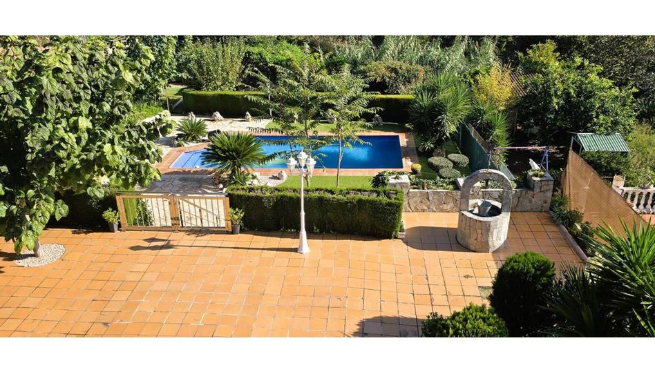 En los exteriores dispone de pequeño jardín con césped artificial, zona de huerto con árboles frutales y con pozo recogedor de agua pluvial(20.000l) y salida directa al bosque, gran piscina con depuradora rodeada de una zona de chill-out que además dispone de un acogedor porche cubierto y un comedor de verano de 25 m² con cocina integrada y con chimenea y un baño con ducha.