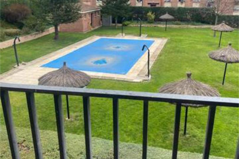 Piscina de verano con césped natural