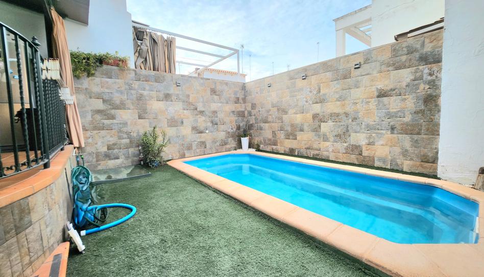 Planta baja: amplio distribuidor de entrada que da paso a la escalera para acceder a la vivienda y al garaje donde se encuentran un aseo que da servicio a la piscina, puerta de paso para el jardín y la piscina. El Jardín cuenta con una capacidad de casi 100 m2 repartidos en amplio porche con cocina y zona de descanso, jardín con césped artificial y piscina con agua salada.