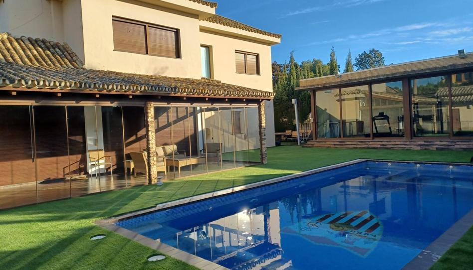 - En el exterior encontramos un garaje techado para 2 coches, una zona de jardín que rodea a la piscina, un gimnasio de unos 80 metros con cristaleras y vistas a la piscina, donde en la parte de abajo se encuentra otra zona para eventos de las mismas medidas. También encontramos en el exterior la zona de barbacoa totalmente equipada y un bonito apartamento completo, con cuarto de baño, cocina y un dormitorio, ideal para las visitas.