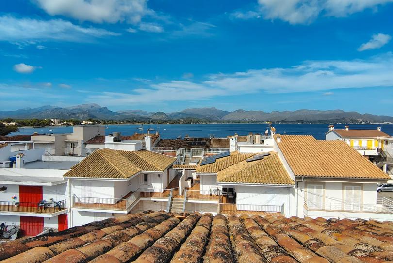 Piso con vistas al mar, en Alcudia, zona Barcares, con salon comedor con chimenea, cocina, 3 dormitorios, 2 baños, gran terraza, balcon coladuria, terraza comunitaria, edificio con solo 2 viviendas, dispone de 2 cocherias, una adaptada como estudio independiente con dormitorio, cocina, baño y terraza interior privada, la otra como garaje - trastero.