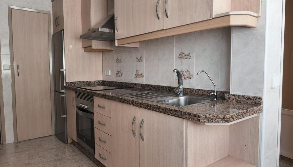 Suelos de plaqueta, paredes de gotelé, vitrocerámica, horno, nevera, calentador a gas.