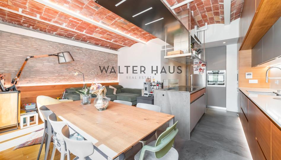 La distribución del inmueble ha sido pensada para aprovechar al máximo cada espacio. El amplio salón-comedor, con zona de estar y techos abovedados catalanes, convive armónicamente con una cocina abierta equipada con isla central y electrodomésticos integrados. Este espacio ha sido especialmente diseñado para disfrutar de un amplio sofá con vistas hacia el parque interior del barrio, una zona calmada ideal para relajarse. Además, el sistema de TV está ingeniosamente insertado en el mueble de la cocina, lo que permite verla cómodamente desde el sofá al desplegarla discretamente.