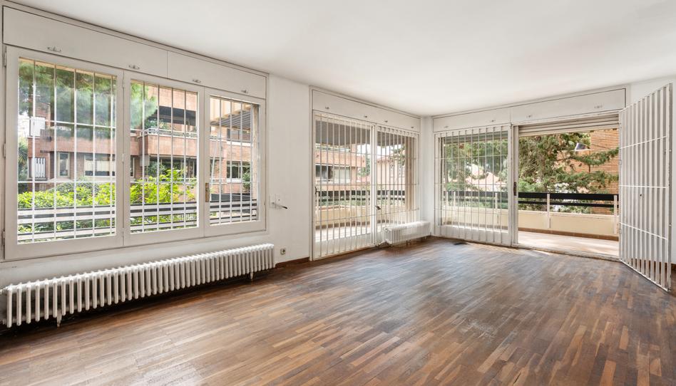 Piso en venta en la zona alta de Barcelona. Finca con servicio de Conserje, Jardín exterior rodeando la finca.