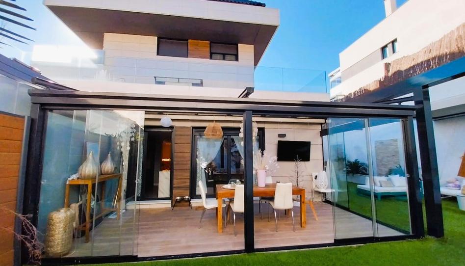 En la planta principal, de 120 m2 encontramos un amplio y luminoso salón-comedor con cocina integrada de diseño, con salida directa a un acogedor porche acristalado. Desde aquí se accede a una impresionante terraza-jardín de 170m², un espacio único para disfrutar del aire libre con total privacidad, equipado con pérgola bioclimática e iluminación led por todo el jardín. Tiene una cabaña de madera de 20 metros cuadrados, muy útil como espacio de almacenamiento o casita de juegos.