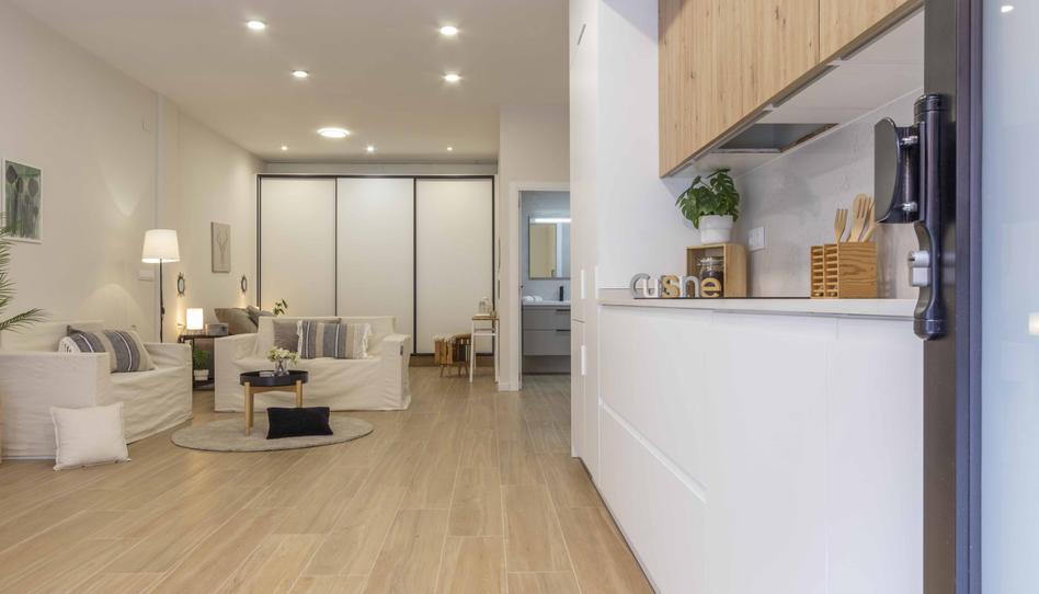 La cocina es uno de los puntos fuertes: cuenta con muebles de gran capacidad y está equipada con electrodomésticos integrados (incluyendo lavadora-secadora 2 en 1, frigorífico, horno, vitrocerámica y campana extractora).