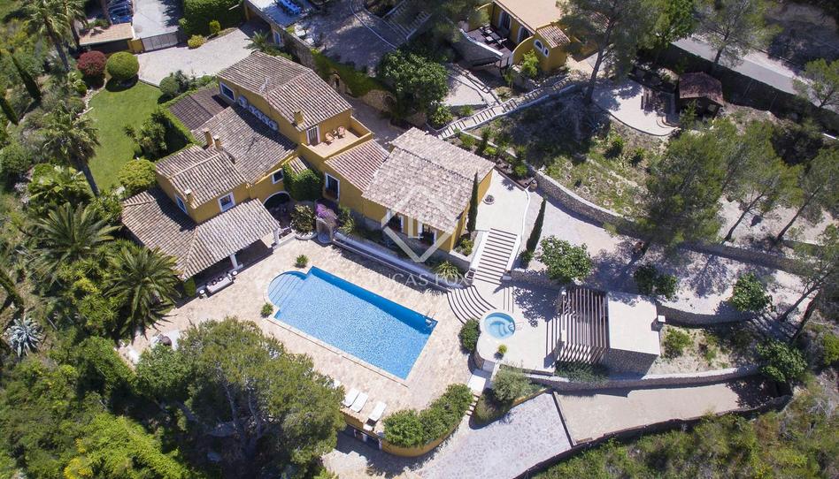 La amplia piscina de 15x6 metros, la zona para tomar el sol y los patios parcialmente cubiertos son accesibles desde la cocina. Hay una caseta de piscina, un bar y un jacuzzi. Un bonito/a jardín verde maduro con árboles frutales y palmeras, rodeado de naturaleza y montañas, es un verdadero paraíso donde uno puede disfrutar de un estilo de vida mediterráneo durante todo el año.