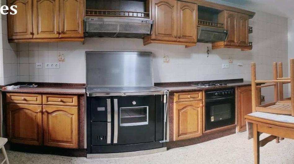 Planta Baja con una amplia cocina, con vitrocerámica, horno, cocina Bilbaína nueva, todos los demás electrodomésticos y una estupenda Lareira de Granito, pasillo de entrada distribuidor que alberga un baño con plato de ducha y acceso a un local lateral que podría convertirse en un gran salón, actualmente es un garaje para dos o tres coches.