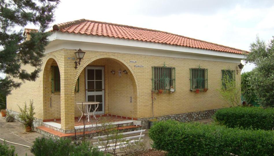 Se trata de un chalet para entrar a vivir en parcela de equina con chimenea en una urbanización (no es rústica) completamente equipada, piscina de 9 m x 5 m con construcciones auxiliares para garajes techados y almacenaje, barbacoa, casita auxiliar de almacenaje, cuarto de baño y caseta para motores de piscina. Se encuentra ajardinado en cuatro isletas para plantación de césped. Tiene arbolado propio de la flora del lugar y tiene salida a dos calles de la urbanización.