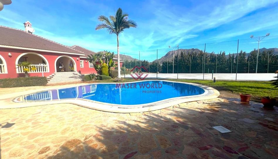 Aparte de su majestuoso interior tenemos que destacar su exterior, con una hermosa piscina de diseño rodeada de paradisiacas palmeras una barbacoa y un aseo donde poder realizar numerosas reuniones familiares o con amigos. Además posee una pista de tenis totalmente equipada para los amantes del deporte.