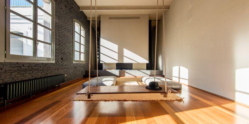 El loft cuenta con espacios abiertos y semi-abiertos que invitan a relajarse y disfrutar de la vida. La zona de salón-"chillout" es un verdadero oasis, con chimenea y un acogedor columpio, perfecta para disfrutar de un momento de tranquilidad.
