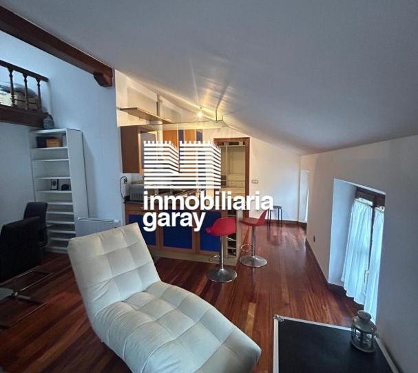 La vivienda se distribuye en una habitación, un baño completo y un salón con cocina integrada, un espacio abierto y funcional. Dispone además de un doble techo abuhardillado, al que se accede mediante una escalera plegable oculta en el techo, ideal como despacho, zona de descanso o espacio polivalente.