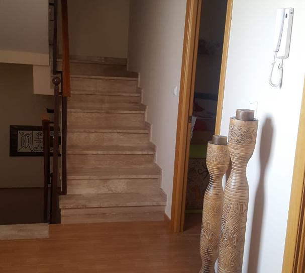 En la planta baja salon cocina patio y un aseo ,en la segunda planta 2 baños completos 3 dormitorios con armarios empotrados todos todas las habitaciones tienes balcon una de ellas terraza y en la tercera 2 azoteas ,la cocina se queda amueblada con todos los ele trodomesticos los baños tambien 2 aires acondicionados en el salon y en el dormitorio principal