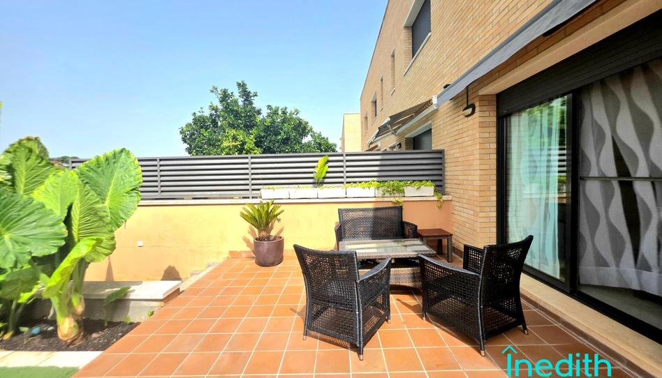 Pero sin duda la joya de la corona es el bonito jardín y terraza exterior a nivel del salón y la cocina; con su espacio chill out bajo los toldos, el comedor de verano con su pérgola y barbacoa, y un trozo de jardín con césped artificial que sería el lugar ideal para construirte una piscina.