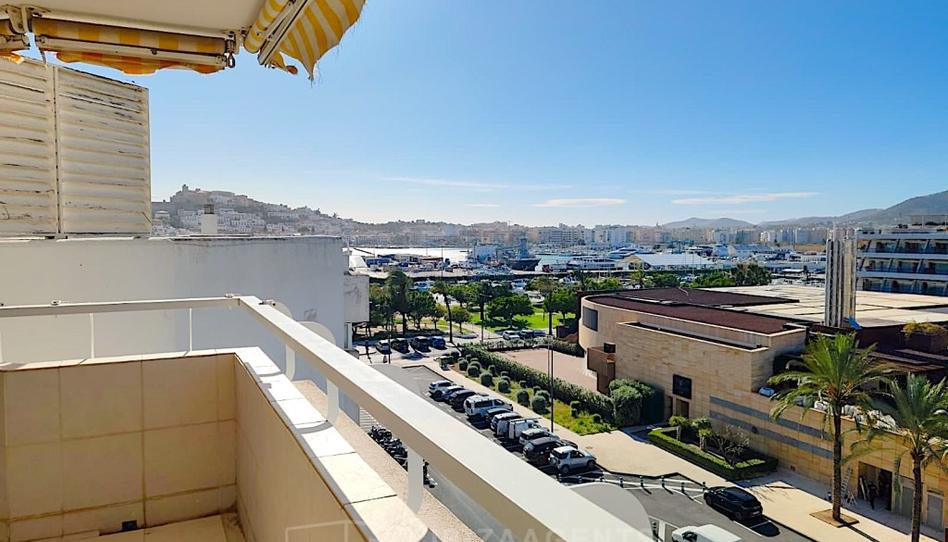 La vivienda cuenta con una amplia terraza con vistas laterales al mar y a Dalt Vila, un valor añadido que aporta carácter y conexión con el entorno. El espacioso salón y comedor, con salida directa al exterior y la cocina, con barra americana abierta al salón, refuerza la sensación de amplitud y funcionalidad.