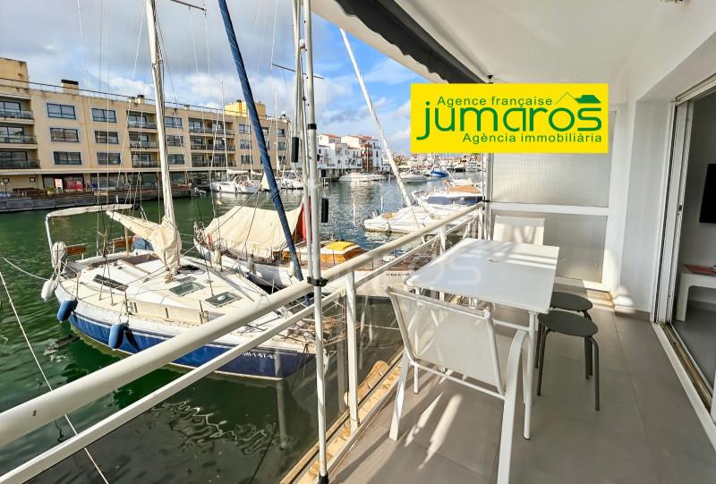 Piso con terraza con vistas al canal en Empuriabrava con aparcamiento subterráneo privado .