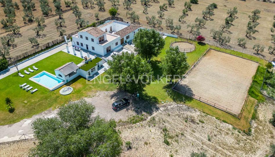 La puerta de acceso motorizada nos da paso a una finca de 1,9 hectáreas en la que la privacidad está más que garantizada. El olivar, los 2.500 m2 de jardines con árboles frutales, la piscina con zona de barbacoa con horno de leña donde disfrutar de veladas eternas con familiares y amigos, los dos baños exteriores, el gimnasio, el huerto, el gallinero, la pista de doma con riego, el picadero para dar cuerda y las placas solares dejan bien claro que más que una propiedad se trata de un estilo de vida.