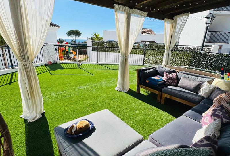 La propiedad es muy luminosa y soleada, destacando por una de las terrazas más grandes y soleadas de todo el complejo, con vistas parciales al mar y un espacio exterior ideal para disfrutar del clima mediterráneo durante todo el año.