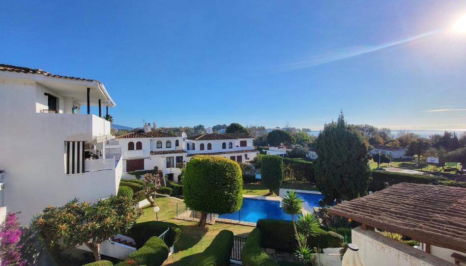Maravillosa casa adosada en nueva Milla de Oro. La urbanización la Albayalde es muy tranquila, pero esta a 5 min (en el coche a Estepona , igual que a San Pedro Alcántara. Unos 150 metros hasta la playa. La urbanización dispone de 6 piscinas (una piscina por cada sector) y zonas ajardinadas muy cuidadas. La casa esta reformada. Tiene 3 plantas distribuidas en 3 dormitorios grandes, 3 baños, cocina, salón independiente, 2 terrazas, 2 pequeños trasteros dentro de la casa y garaje. Ventanas PVC, suelo de mármol, AA. Orientación sureste.