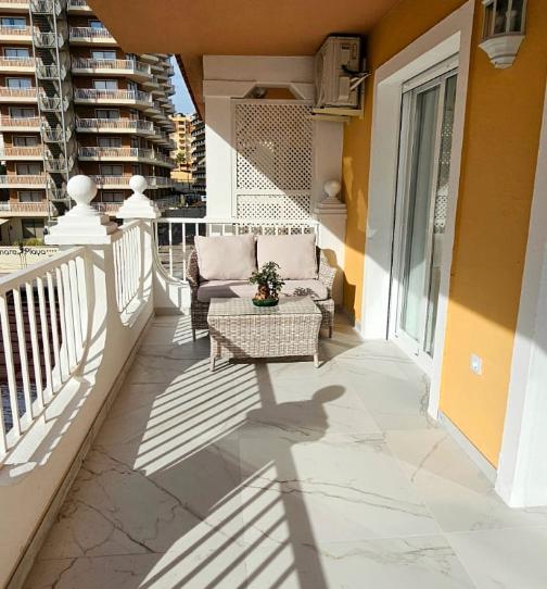 Salón comedor con salida a la terraza, con cocina americana totalmente equipada con Horno y lavavajilla, terraza de 12 metros con vistas laterales preciosas al mar.