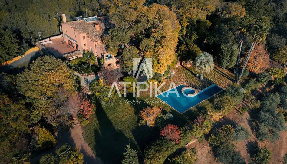 El jardín, de aproximadamente 7.000 m², cuenta con una piscina de 105 m² con zona de hidromasaje con agua caliente y una zona de chill out. La finca alberga abetos, almeces centenarios, pinos, un huerto ecológico, árboles frutales y un centenar de olivos arbequinos que producen aceite anual. Un depósito de 80.000 litros, alimentado por un manantial propio, asegura el riego automático y el abastecimiento de la piscina. Completa este espacio un pozo, un riachuelo y un pequeño lago.