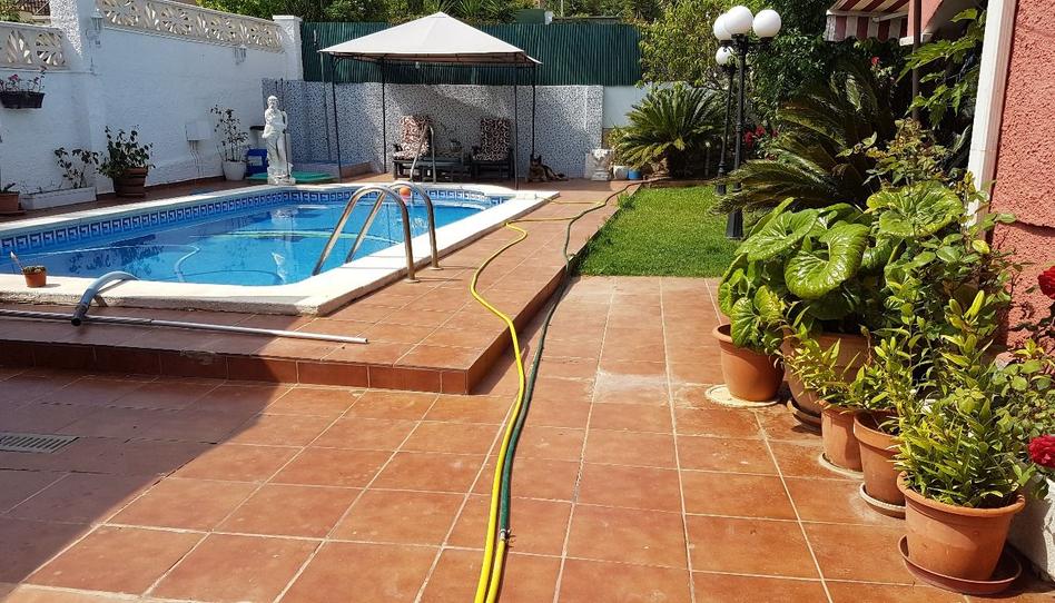 Jardín (zona huerto), con bonito porche de verano. Barbacoa cerrada con cocina. Estancia con bancos y mesa de piedra. Magnífica piscina con agua hidrosalina y ducha.