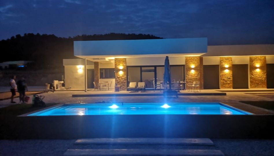 Se trata de un espectacular chalet de diseño moderno, muy luminoso y situado en una parcela de 10.000m2, que dispone de tres dormitorios y dos baños, uno de ellos en suite. Está construida en una planta con un salón comedor con cocina equipada e integrada además dispone de tres dormitorios muy luminosos.