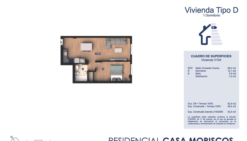 Una de las viviendas que ofrecemos en el Residencial Casa Moriscos , es un apartamento de 1 habitación, 1 baño y cocina abierta al salón- comedor (V104) . Hay posibilidad de plaza de garaje 18.000€+IVA . La comunidad dispone de piscina comunitaria. Para más información contacte con Mila Olmedo