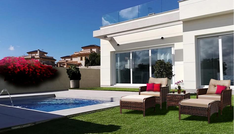 Preciosa villa pareada, con jardín y piscina privada, en zona tranquila, La Herrada, en Los Montesinos. Pequeña localidad a pocos kilómetros de Torrevieja, Guardamar y sus fantásticas playas. A 30 minutos del aeropuerto y la ciudad de Alicante.