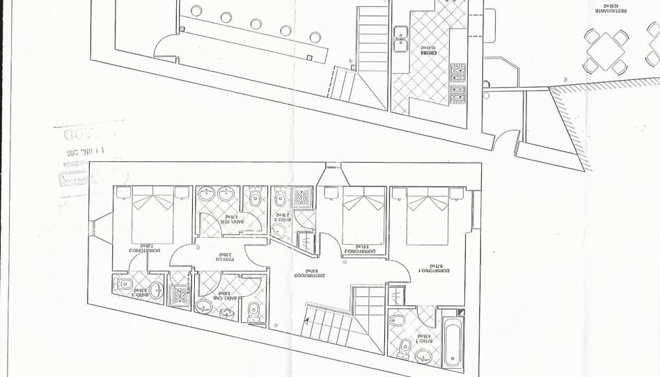 Planta primera: 3 dormitorios, cada uno con baño privado. Ideal para alojamiento turístico o familiar.
