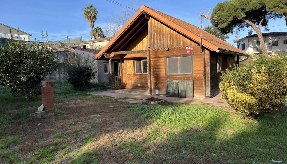 CASA DE MADERA EN URBANIZACION DE MAÇANET, MUY CERCA DE LAS PLAYAS DE LLORET DE MAR, TERRENO DESCENDENTE LEVE CON ARBOLES FRUTALES.