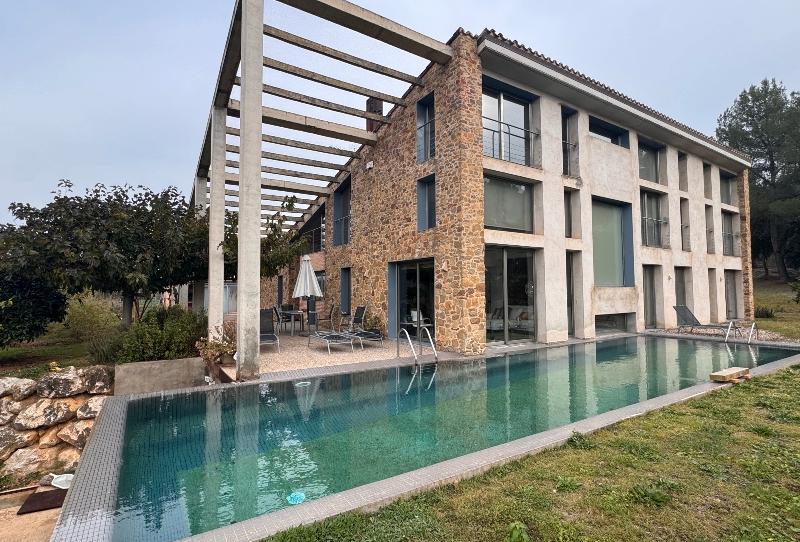 Magnífica finca en Madremanya: 20.000 m2 de terreno de huerta en producción, de árboles frutas y verduras, y una construcción de 400 m2, de arquitectura moderna y líneas puras a base de hormigón visto en estructura interior y exterior; sectores de piedra y ladrillo manual, escaleras interiores de gran facilidad de subida y bajada, de madera tropical barnizada, carpintería exterior de vidrio con carpintería de aluminio de máxima calidad, iluminación natural en todo el interior de la vivienda, calefacción con suelo radiante.