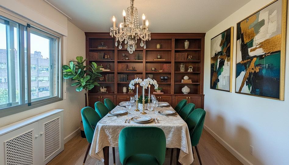 El área social se articula en torno a un salón de grandes dimensiones con zona de comedor, un espacio elegante y versátil, ideal tanto para la vida familiar como para la recepción. Los suelos de parquet aportan calidez y continuidad a toda la vivienda.