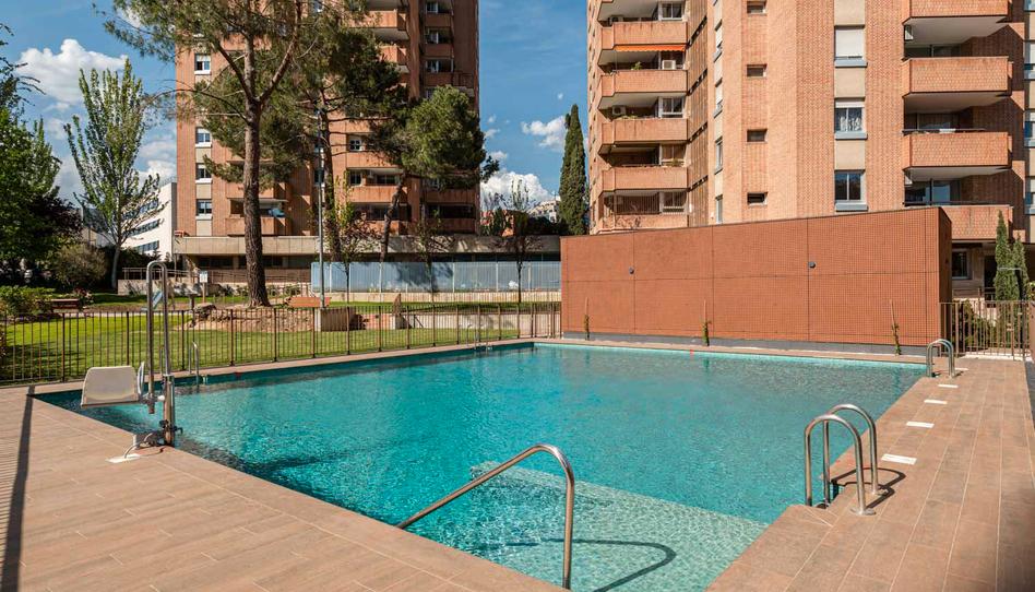 Bonita piscina rodeada de áreas verdes, con cuartos de baño. El parque infantil, al igual que todo el exterior de la urbanización, han sido reformados.