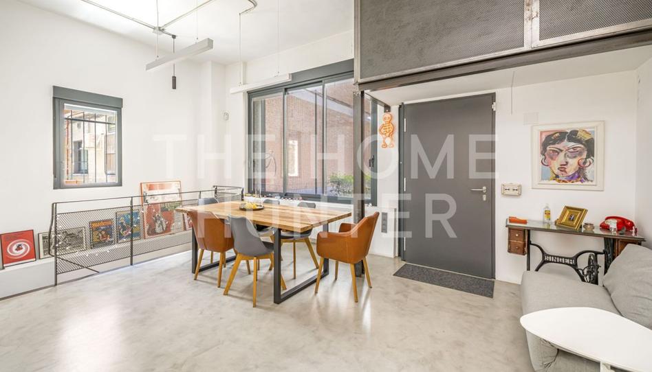 Este piso duplex tipo loft tiene 127m² construidos (54m² en planta superior y 64m² en planta inferior). Cuenta con un dormitorio doble con vestidor, dos baños completos, amplio salón-comedor, cocina abierta con isla equipada (y encimeras Dekton), despensa y una sala de lectura y/o despacho. El piso tiene preinstalación para aire acondicionado, persianas eléctricas y domotizadas, calefacción por gas natural y grandes ventanales oscilobatiente con vidrio triple.Está orientado al este/oeste, cuenta con suelo de microcemento y carpintería de hierro y escalera hecha a mano y tiene puerta de seguridad, así como dos entradas independientes. Se reformó en 2020. La finca es de 1965.