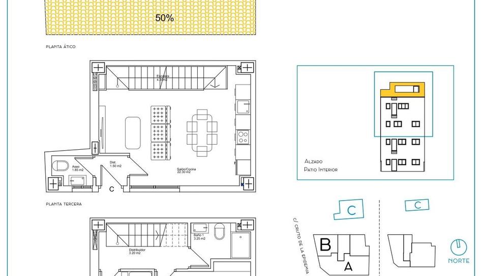 La vivienda se encuentra en la segunda y tercera planta del edifico más una terraza solarium en la parte de arriba totalmente privativa para dicha vivienda.