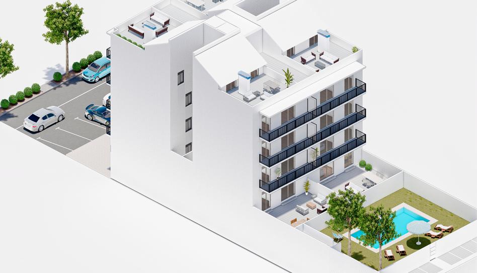 El edificio dispone de un área comunitaria ajardinada con piscina, y junto a ella, una terraza exterior dividida por parcelas de uso privativo para cada piso (excepto los 2 primeros pisos que tienen terraza conectada a la zona comunitaria). Un espacio ideal para guardar las bicicletas, las tumbonas o lo que el propietario quiera.