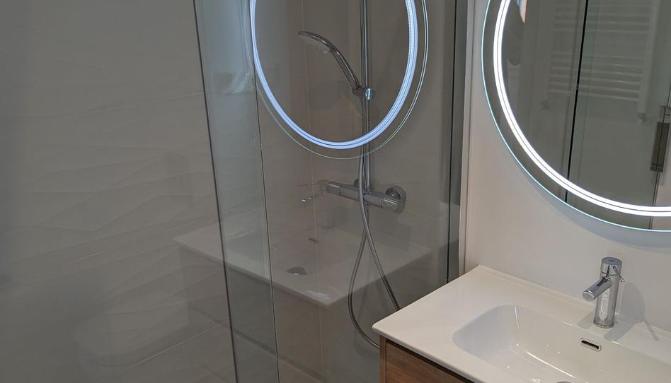 Grifería Grohe EcoJoy, duchas termostáticas, sanitarios Rimless Grohe, cisterna empotrada Geberit, mamparas, muebles y espejos con iluminación incluidos.