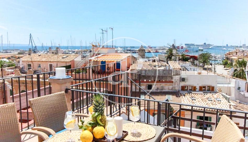 La vivienda dispone de 80 m² interiores y 70 m² adicionales de terrazas en dos niveles, que ofrecen unas vistas espectaculares de Santa Catalina y la Bahía de Palma. Ubicado en una de las zonas más exclusivas y hermosas de Palma, a pocos pasos del Paseo Marítimo, está rodeado de comercios, el famoso mercado de Santa Catalina, y cuenta con excelentes conexiones de transporte público. Es el lugar perfecto para disfrutar de la rica oferta gastronómica y de ocio de la zona.
