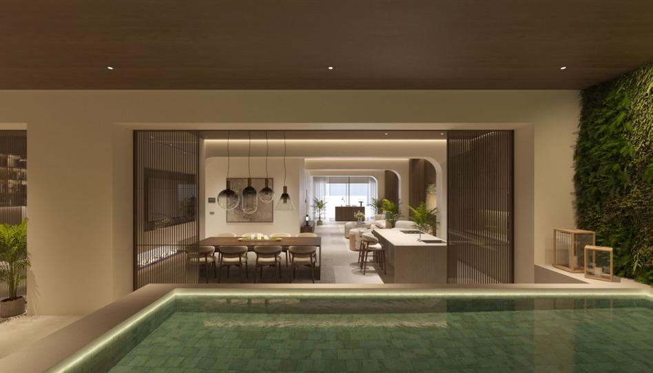 El proyecto incluye distribuidor desde el garaje con espacio para 2 vehículos, un aseo para invitados, 2 amplios dormitorios con baño en suite, espacioso salón-comedor con cocina integrada, sala de gimnasia, lavandería y piscina interior.