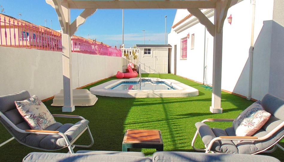 Villa planta baja pareada en esquina, con piscina privada y amplias zonas de terraza y jardín, situada en El Mojón, Pilar de la Horadada, a menos de 400m del mar y del Parque Regional de las Salinas y Arenales de San Pedro del Pinatar, y a poco mas de la Playa de Las Higuericas (Pilar de la Horadada), una de las playas más de moda y mas populares de la Costa Blanca Sur.