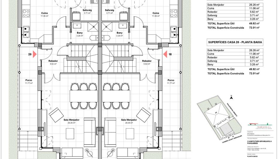 2 Cases aparellades de nova construcció situades al C/Jacint Verdaguer de Porqueres (Mata). 210m2 construïts + 130m2 de jardí. 4 habitacions, 2 banys, garatge