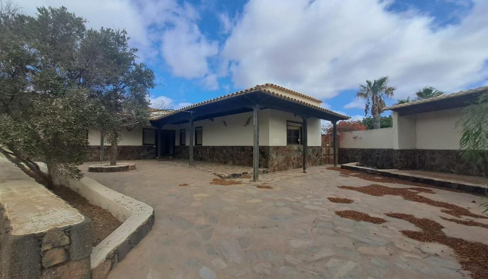 Chalet de segunda mano situado en la localidad de Casillas del Ángel , municipio de Puerto del Rosario , La vivienda tiene una superficie de 180 m² aproximadamente que está compuesta de salón, cocina, 3 dormitorios y 1 baño , amplio espacio exterior con jardines y patio .