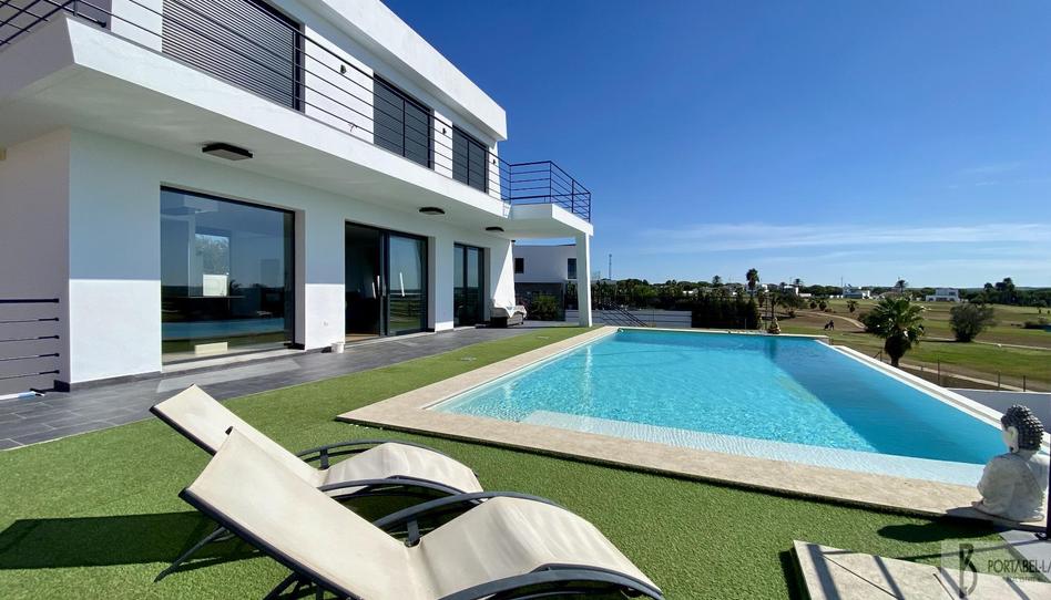 Chalet en Campo de Golf, con 197 m² construidos, 160 m² útiles, 793 m² metros de parcela, 3 dormitorios, 3 baños, 2 garaje/s, nuevo, exterior, 3 armarios, cocina con electrodomésticos, orientación sur, 2021, portero, piscina privada, 2 plantas del edificio, agua caliente individual, energía agua placa solar, gastos de comunidad/mes de 30 €, alta suministros realizada, acepta animales, suelo de gres. Villa de lujo en campo de golf a estrenar.